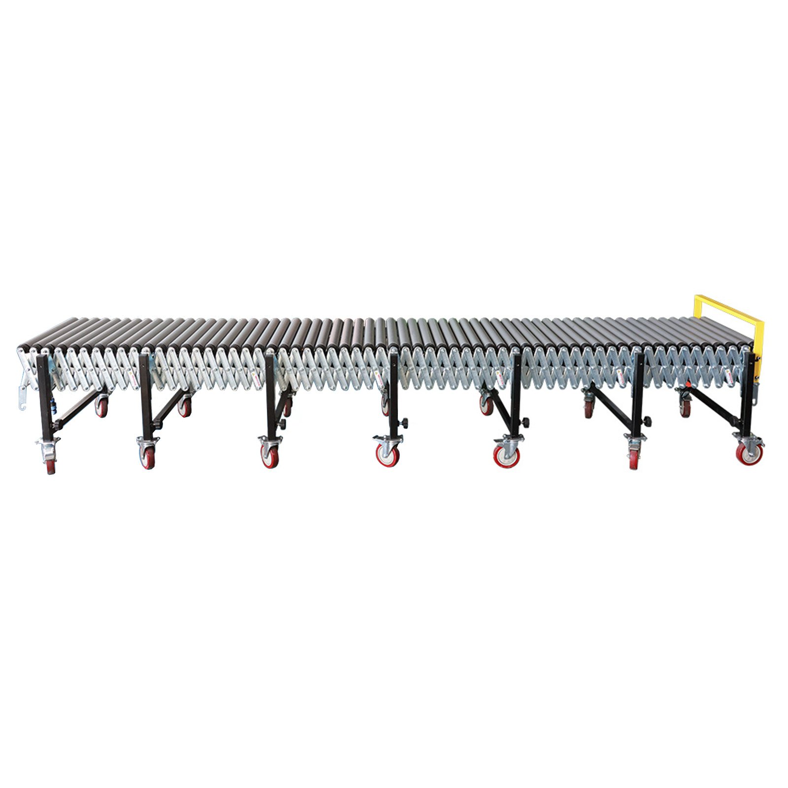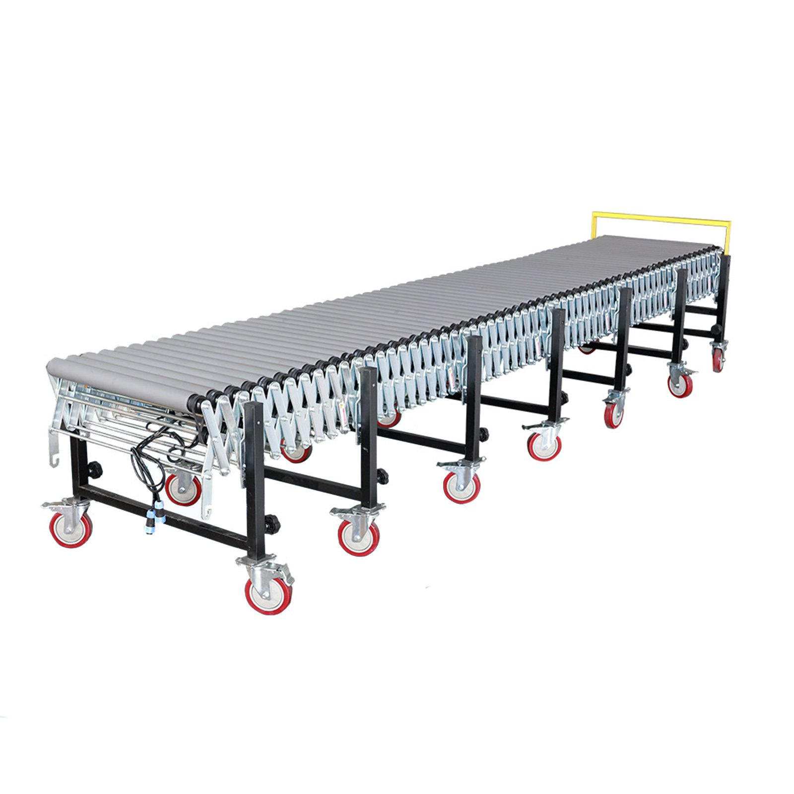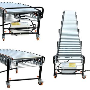 Powered Flexible Roller Conveyor is an expandable roller conveyor with controllable conveying speed & direction and adjustable supporting leg height. The flexible design enables the conveyor to bend, expand and retract as needed, saving you space and enabling service to multiple bays.The conveyor enable fast, efficient loading or unloading of packages in shipping, transportation, packaging, and other applications with less operator assistance.