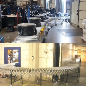 •Configuration versatility: Whether you need the flexible automatic roller conveyor to move around corners, meet multiple docks, or navigate close quarters where other infrastructure or equipment is present, a power flex conveyor can fulfill those requirements.